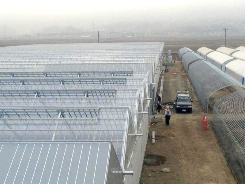 | 施設の特長など | 高設ベンチ方式、養液栽培施設 いちご高設栽培方式施設 多連棟式複数棟 ( 設備 ) 自動天窓換気システム、 温風式暖房設備、 遮光・保温二層式カーテン、手動式巻上換気装置、空気撹拌扇、電照ランプ (うち自社施工設備)自動天窓換気システム、手動式巻上換気装置 ( 被覆材 ) <栽培棟>農POフィルム <管理棟>エフクリーン |