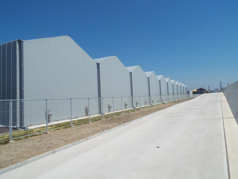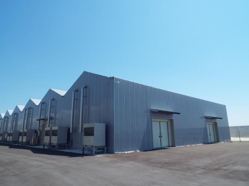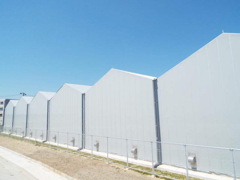| 施設の特長など | 11連棟式2棟 菌床栽培工場 外装光遮断フィルム使用 高軒高栽培温室 |