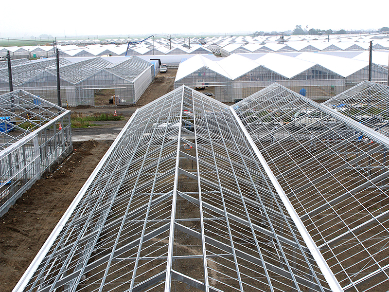 | 施設の特長など | 高設ベンチ方式、養液栽培施設 いちご高設栽培方式施設 多連棟式複数棟 ( 設備 ) 自動天窓換気システム、 温風式暖房設備、 遮光・保温二層式カーテン、手動式巻上換気装置、空気撹拌扇、電照ランプ (うち自社施工設備)自動天窓換気システム、手動式巻上換気装置 ( 被覆材 ) <栽培棟>農POフィルム <管理棟>エフクリーン |