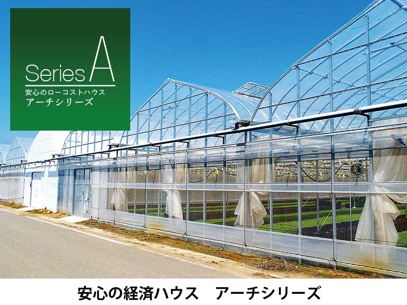 高軒高設計で採光性に優れ、夏の高温障害も抑制。温室内の環境変化を最小限に抑えます。また、通気性が良く換気効率に優れているため大規模栽培に適した安定した室内環境と、最も効率的に作業を高めた次世代のグリーンハウスです。年間を通じて計画的な栽培が可能になります。