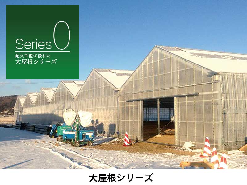 大屋根部からの受光量が均等であり、耐久性にも優れた大屋根シリーズは積雪や強風にも強い節気であらゆる場面に対応します。広々設計でワイドに活用できます。さらに、耐久性能をアップしたのがグリーンハウス随一の丈夫な大屋根Sシリーズ。